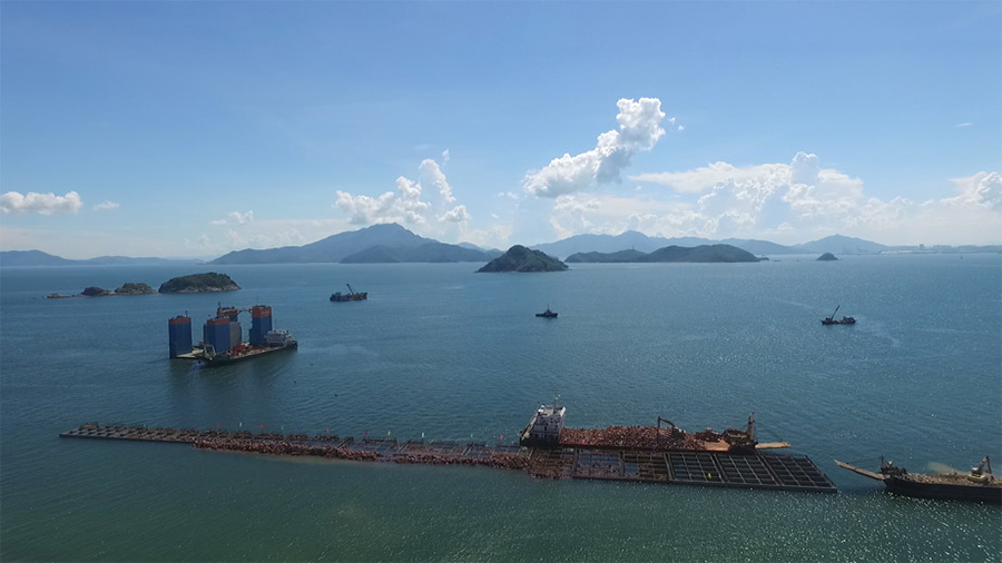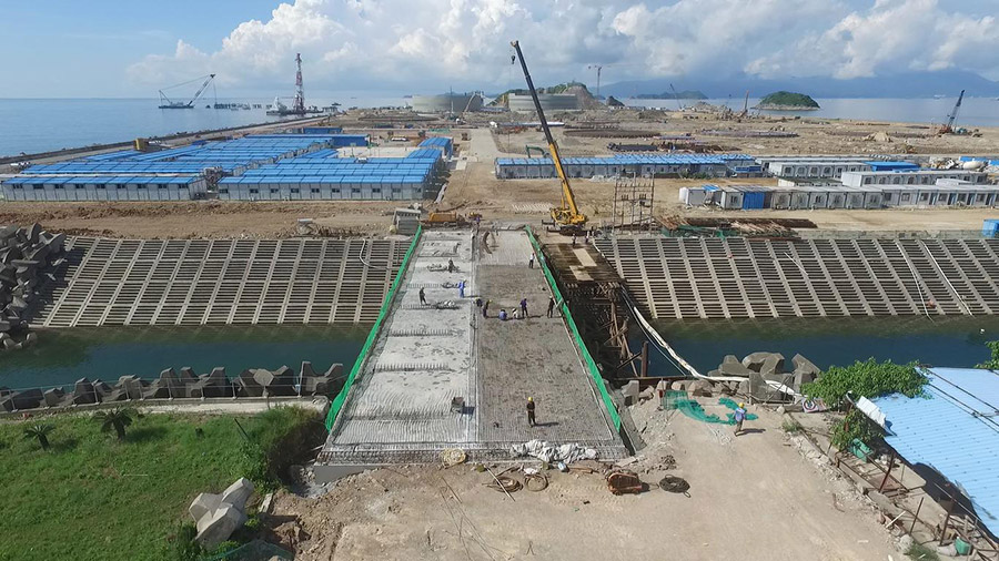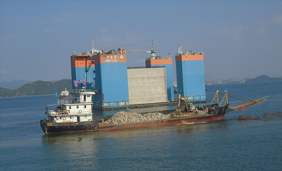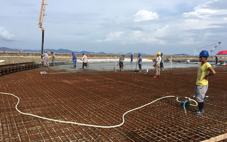 (一)燃料油調和配送中心項目 擬建庫容為115萬立方米罐區。其中: 1.重油罐組60萬立方米:6座10萬立方米(80m×21.8m)儲罐。 2.燃料油罐組(調和罐)40萬立方米:8座5萬立方米(60m×19.3m)儲罐。 3.重柴油罐組15萬立方米:5座3萬立方米(44m×21.78m)儲罐,1座3萬立方米拱頂儲罐。 庫區油品年周轉量為1200萬噸,重油、重柴油、燃料油年周轉次數分別為17次、16次、30次。 (二)配套碼頭工程項目 配套碼頭設計總吞吐能力為2405萬噸/年。建設一個30萬噸級油接卸船碼頭(30萬噸級泊位長度470m),和三個2萬噸級燃料油出運碼頭(三個2萬噸級泊位總長665m,寬20m)以及相應配套設施。 (三)35KV升壓變電站及海底電纜 本項目建設35KV升壓變電站(1×12.5MVA)一座及敷設海底電纜總長約16km(含6km陸域電纜),為燃料油調合配送中心及碼頭生產提供電力。