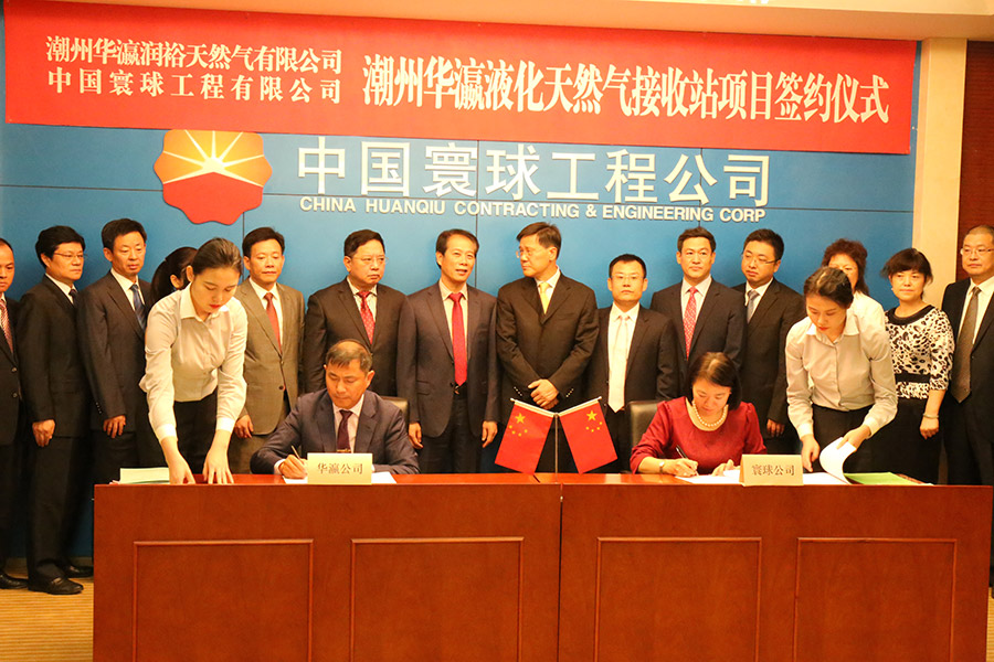 2016年9月10日,潮州華瀛潤裕天然氣有限公司與中國寰球工程有限公司在北京舉行潮州華瀛液化天然氣接收站項目簽約儀式。該項目的初步設計,邀請國內五家知名的企業參加招標,通過激烈競爭,最后中國寰球工程有限公司以綜合優勢成功中標。 簽約儀式由中國寰球工程有限公司總監兼LNG與離岸公司總經理黃永剛主持。中國石油集團公司總經理助理汪世宏、潮州市副市長陳少宏、潮州市交通運輸局局長黃奕斌、潮州港開發區管委會主任、潮州市饒平縣縣長林文峰作為特邀嘉賓出席簽約儀式。 華瀛投資控股集團有限公司董事長舒昌雄、中國寰球工程有限公司總經理王新革分別致詞并在協議上簽字。 舒昌雄董事長在致詞中指出,為了響應國家和廣東省關于優化能源結構、推動綠色發展的一系列號召,加快潮州地區液化天然氣的供應, 2013年6月,我公司在潮州市注冊公司,成立潮州華瀛潤裕天然氣有限公司,主要服務瓷都的6000多家陶瓷企業。該項目一期規模300萬噸/年,二期規模600萬噸/年,總投資預計約120億元。項目建成后可為其所在地原中央蘇區的饒平縣增加十幾億的稅收和上千人的就業崗位。他相信通過本次合作,雙方將能充分發揮雙方的優勢,整合資源,實現強強合作,共同為我國液化天然氣的發展做出新貢獻。 王新革總經理在講話中表示,中國寰球工程有限公司致力于國家建設綠色能源工程,把目光投向了大中型天然氣液化工程,為實現黨的十八大提出的生態文明建設和建設美麗中國目標貢獻力量,中國寰球工程公司在LNG接收站建設過程中,勇于創新,推進LNG國產化進程,取得一系列優異業績。而此次與潮州華瀛潤裕天然氣有限公司的合作,我們一定不辜負貴公司對我們的期望,努力把該項目打造成優質工程、示范項目,加快粵東地區工業用氣和家庭用氣供應的進程,為加快廣東省“全省一張網”提供有力的支撐。