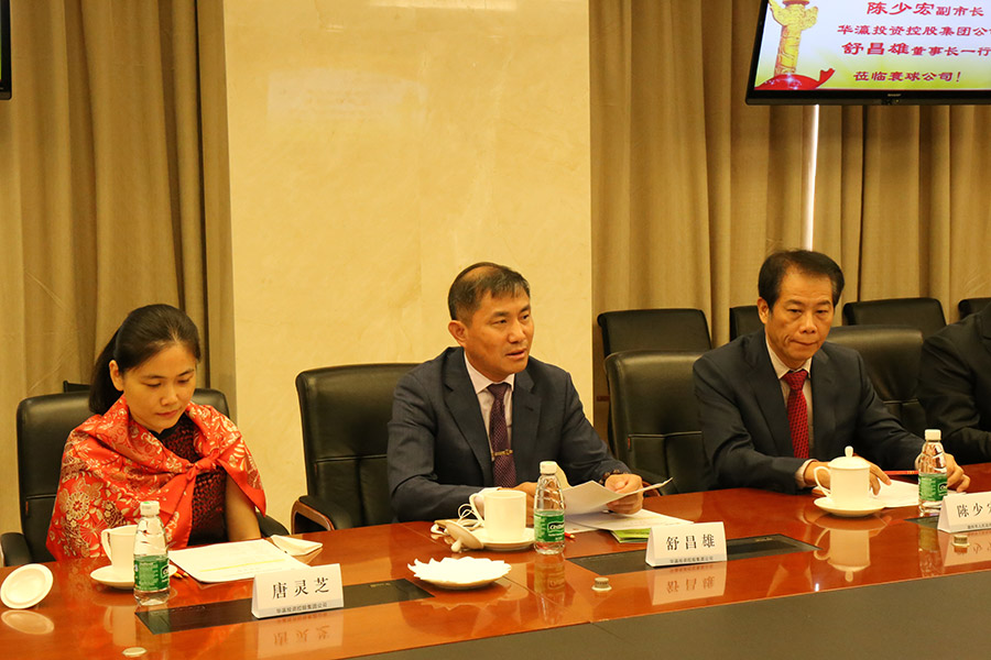 華瀛集團董事長舒昌雄、潮州市饒平縣縣長林文鋒和饒平縣縣委副書記黃奕斌